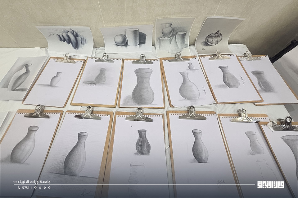 أقام قسم شؤون الأقسام الداخلية في جامعة وارث الأنبياء (عليه السلام) ورشة فنية بعنوان "تطوير مهارة الرسم" بالتعاون مع مديرية شباب ورياضة كربلاء / شعبة الثقافة والفنون، بمشاركة مجموعة من طالبات الأقسام الداخلية في أجواء فنية تفاعلية تهدف إلى تنمية المواهب وتعزيز الإبداع.