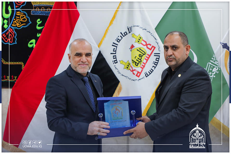 استقبل السيد المساعد العلمي الاستاذ الدكتور عباس الدعمي، وفد من كلية التمريض في جامعة كربلاء برئاسة عميد الكلية ورئيس لجنة عمداء كليات التمريض العراقية الاستاذ الدكتور علي كريم خضير الذي زار الجامعة لتقديم درع التميز والابداع للسيد رئيس الجامعة وتسلمه بالنيابة السيد المساعد العلمي والسيد عميد كلية التمريض والسيد عميد كلية الطب ذلك لمساهمتهم الفاعلة وتعاونهم في انجاح الإمتحانات النهائية التقويمية للطلبة للعام الحالي 2021 -2022 إضافة الى كتب شكر وتقدير.