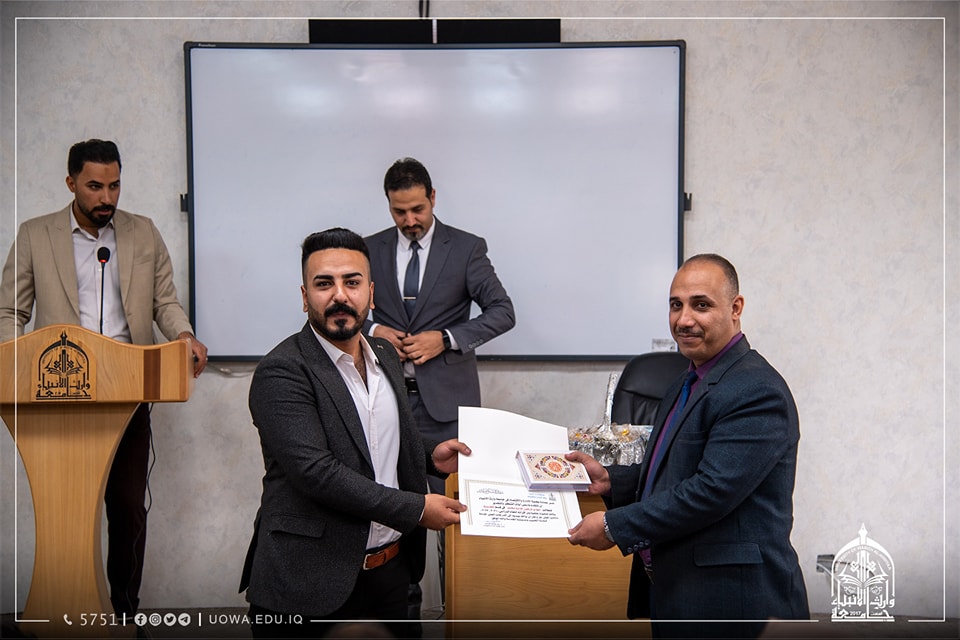 اقامت كلية الإدارة والاقتصاد في جامعة وارث الانبياء (عليه السلام) احتفالية لتكريم الطلبة الاوائل في قسمي المحاسبة وإدارة الاعمال، وفي كلمة القاها في الحفل بين السيد عميد الكلية الاستاذ الدكتور عواد الخالدي أن هذا التكريم جاء لتثمين جهود الطلبة في الدراسة والتفوق وتشجيعهم على بذل المزيد، وتحفيزاً للطلبة الاخرين ليحذوا حذو زملائهم .