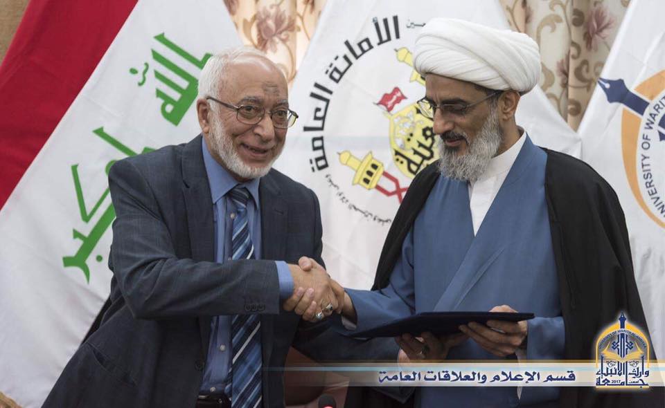 وقعت جامعة وارث الانبياء التابعة للعتبة الحسينية المقدّسة مذكرة تفاهم مع مؤسسة الدليل للدراسات الفكرية والعقدية، وقال الاستاذ الدكتور علي الشيخ عضو المجلس العلمي للمؤسسة ان الهدف من توقيع هذه المذكرة هو من اجل تبادل الخبرات واقامه الندوات العلمية في الجامعة ، واضاف الشيخ تم اقامه باكورة الاعمال لهذا التفاهم بإقامة ندوة بعنوان (الأديان في القران الكريم) والهدف منها هو التعريف حول منهجية القران في التعامل مع العقائد و الكتب المقدسة والتشريعات في الأديان السابقة وبيان كيفية تحريفها وخروجها عن ما انزله الله سبحانه وتعالى