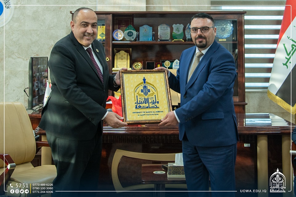وفي نهاية الزيارة قدم السيد رئيس الجامعة الاستاذ الدكتور ابراهيم الحياوي هدايا الشكر والتقدير لاعضاء الوفد.