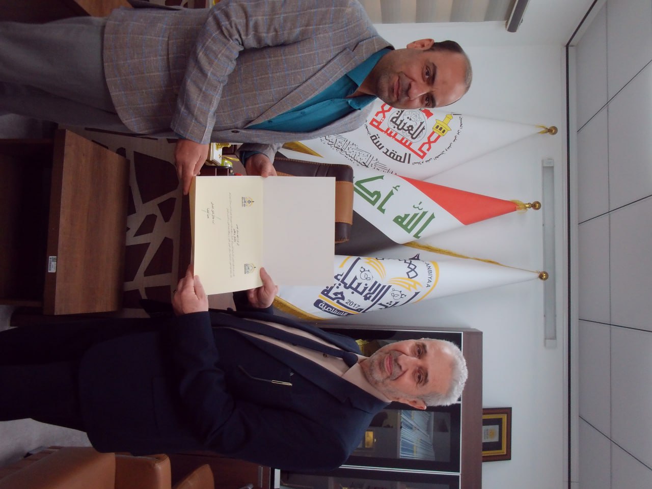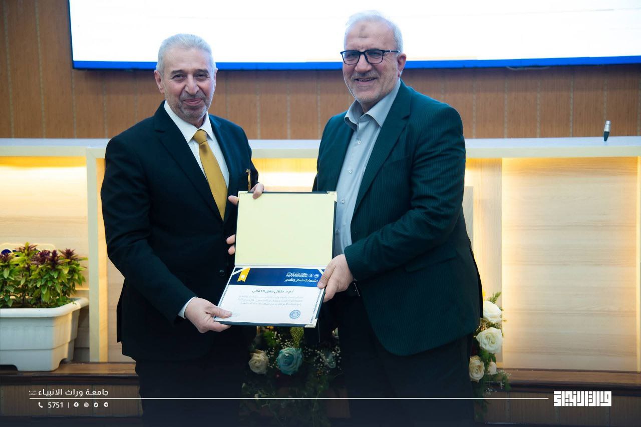 تكريم عميد كلية العلوم الإسلامية بدرعٍ ذهبي من قبل الأمانة العامة للعتبة الحسينية المقدسة