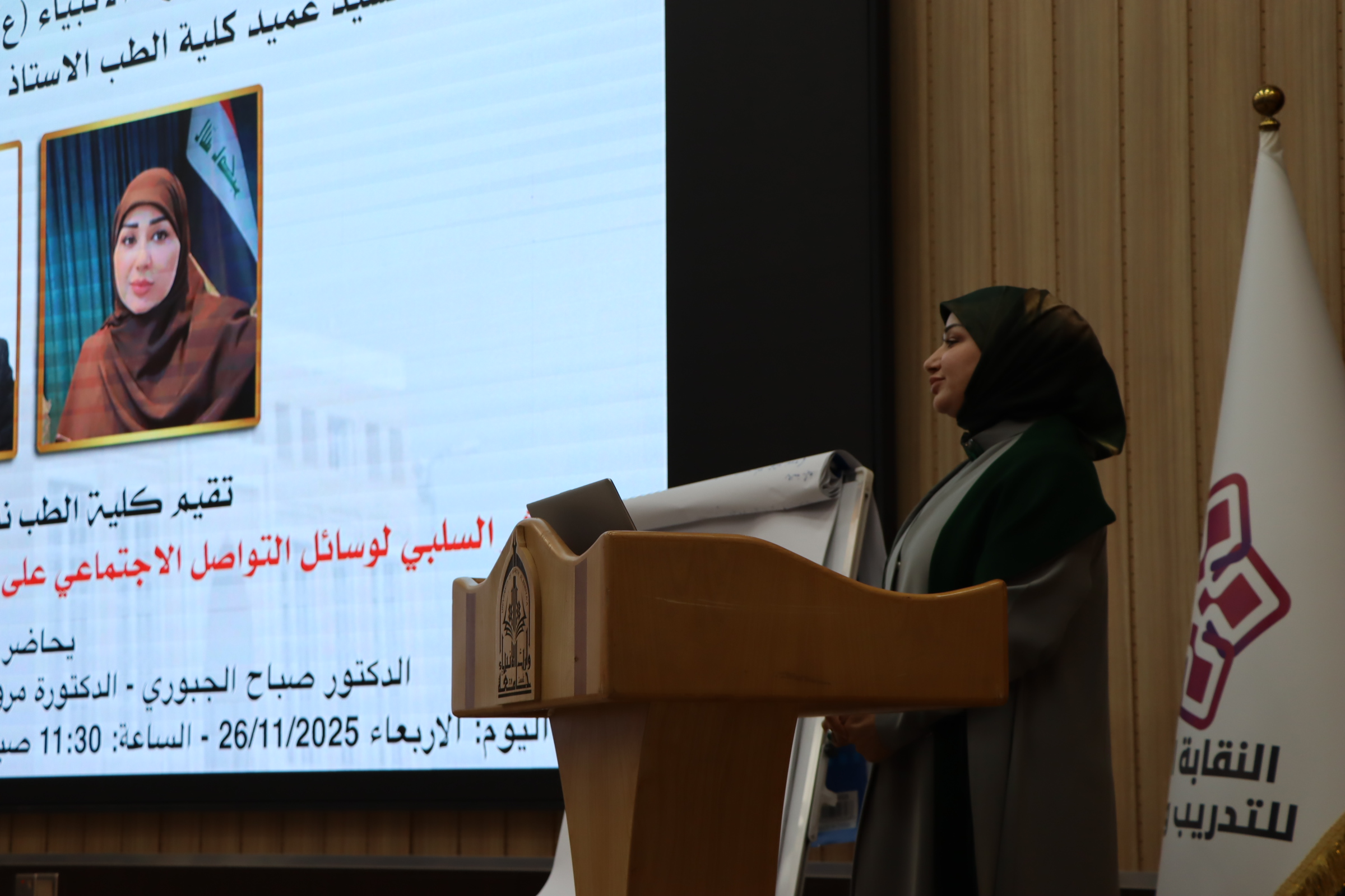 نظمت كلية الطب في جامعة وارث الأنبياء (ع) محاضرة بعنوان “الأثر السلبي لوسائل التواصل الاجتماعي على الفرد والمجتمع في ضوء القيم الإسلامية”، ألقاها كل من صباح الجبوري ومروة سعد العلاق.وتهدف المحاضرة إلى توعية الطلبة والمجتمع الأكاديمي بالمخاطر الاجتماعية والنفسية لوسائل التواصل الاجتماعي، وتعزيز القيم الإسلامية في التعامل مع هذه الوسائل بما يساهم في بناء مجتمع أكثر وعيًا وتحضرًا.وأكدت عمادة كلية الطب على أهمية تنظيم مثل هذه المبادرات التثقيفية التي تدمج المعرفة الأكاديمية مع القيم الأخلاقية والدينية، بما يعزز من سلوكيات الطلبة ويقوي دورهم المجتمعي