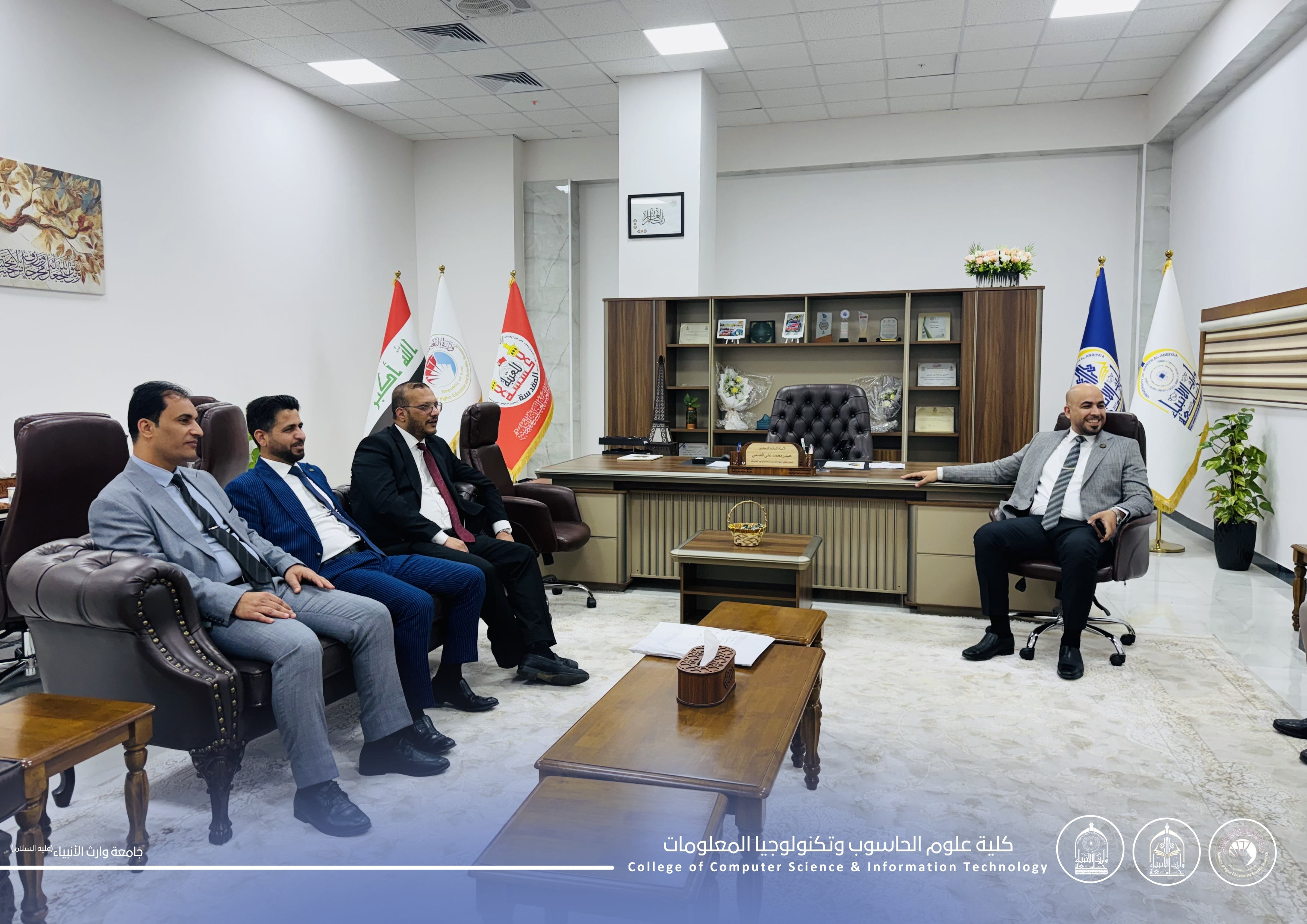 بعد ان ناشدت جامعة وارث الانبياء المعنيين لإنقاذ الجزر الوسطية والمساحات الخضراء التي تقع على طريق بغداد -كربلاء، زار السيد مازن الياسري مدير بلديات كربلاء المقدسة جامعة وارث الأنبياء حيث أعرب عن تجاوبه مع ماجاء في كتاب رئيس الجامعة للعناية بالمساحات الخضراء وجانبي الطريق المحاذية للجامعة ، وأعرب رئيس الجامعة الاستاذ الدكتور طالب حسن موسى عن تقديره وامتنانه لجناب السيد مدير البلديات على هذه الروح الحسينية والاستجابة السريعة منه فله كل الدعاء بالخير والموفقية