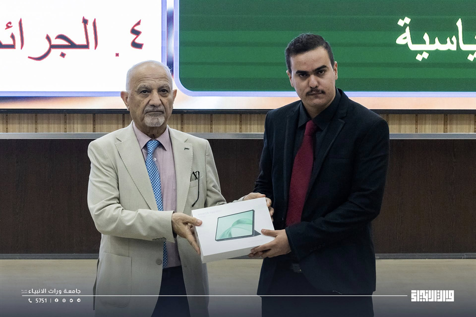 نظّمت كلية القانون في جامعة وارث الأنبياء (عليه السلام) مسابقة علمية لطلبة المرحلة الثانية، بحضور السيد المساعد الإداري الأستاذ الدكتور نوفل الأعرجي، وذلك في إطار حرص الجامعة على تنمية القدرات العلمية وتعزيز روح المنافسة الإيجابية بين الطلبة.