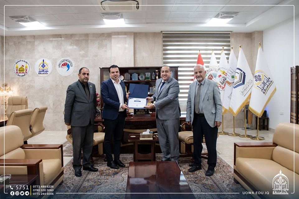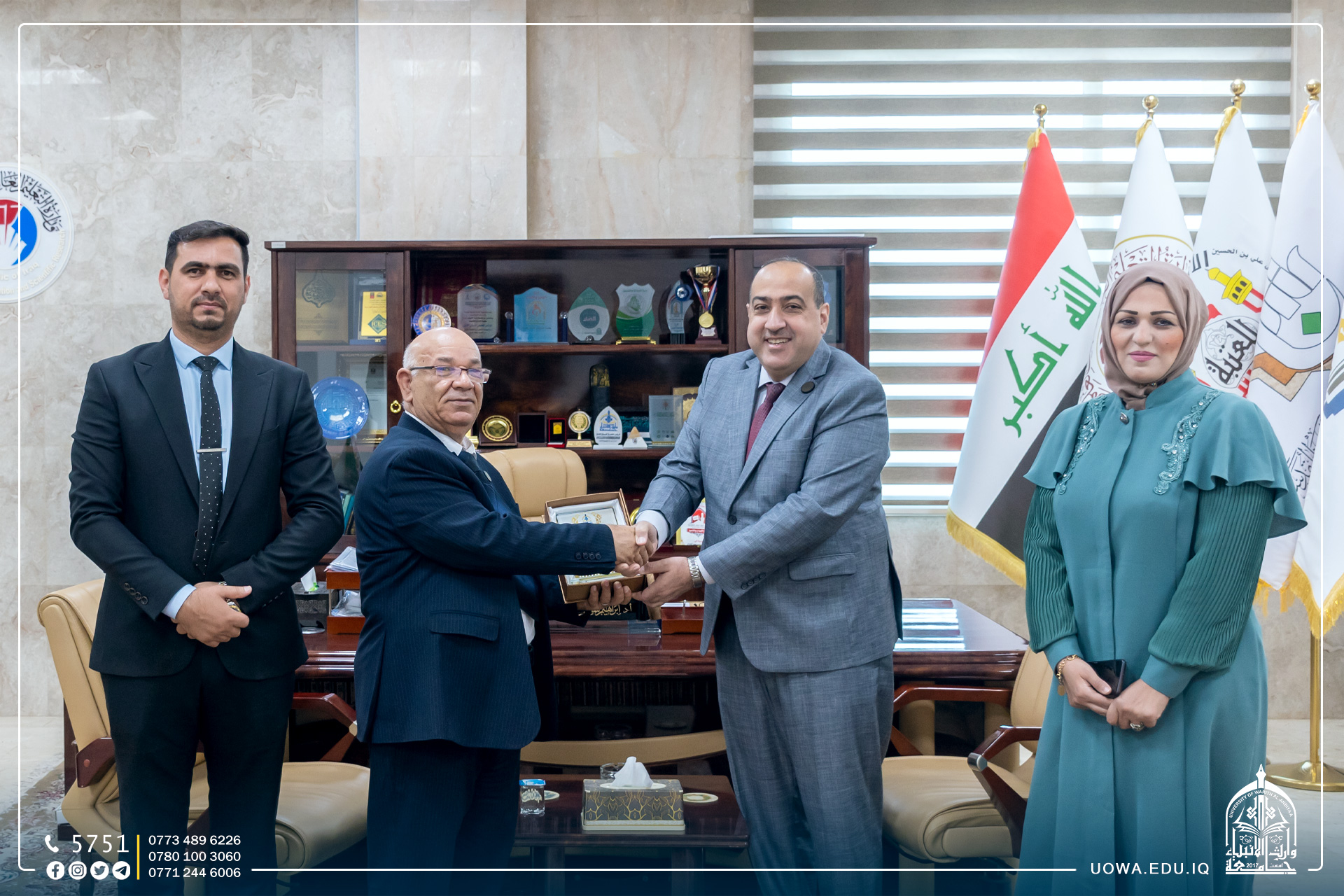 تعزيزاً للتعاون العلمي والاكاديمي مع الجامعات العراقية، استقبل السيد رئيس جامعة وارث الأنبياء (عليه السلام) الاستاذ الدكتور ابراهيم الحياوي، الاستاذ الدكتور باسم شهاب احمد رئيس جامعة ابن سينا للعلوم الطبية والصيدلانية بالعاصمة بغداد، للتباحث حول امكانية التعاون العلمي والاكاديمي ضمن اطار العمل المشترك لمؤسسات وزارة التعليم والبحث العلمي.