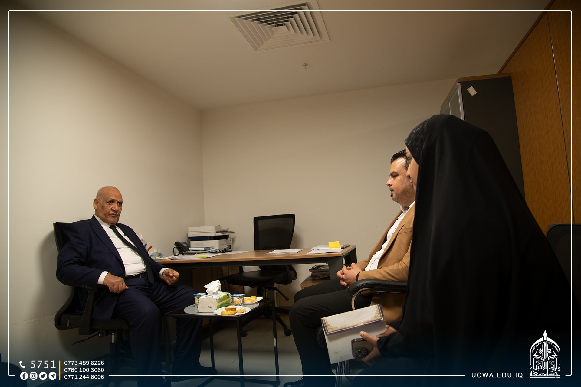 خلال زيارته الى جامعة وارث الانبياء(عليه السلام) ولقاءه مع السيد رئيس الجامعة الاستاذ الدكتور ابراهيم الحياوي، بين الاستاذ الدكتور شفيق المولى رئيس جامعة العين، إمكانية التعاون العلمي والاكاديمي بين الجامعتين، اضافة الى تأكيد الطرفين على تطبيق استراتيجية وزاره التعليم في وضع الخطط للدخول في التصنيفات العالمية وامكانية استقبال الطلبة الاجانب في جامعاتنا.