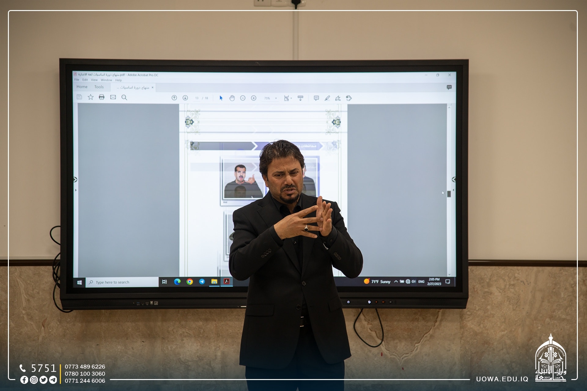 ضمن مبادرة "بركات الإنوار المحمدية" التي اطلقتها هيئة الصحة والتعليم الجامعي، وبحضور عدد من مدراء جمعيات الصم في المحافظات العراقية، أقامت جامعة وارث الانبياء(عليه السلام) وبالتعاون مع أكاديمية الامام الحسين (عليه السلام) التخصصية للصم، ندوة علمية لطلبة كلية الطب عن "لغة الإشارة واهمية تعلمها" قدمها مدير الإكاديمية باسم العطواني.