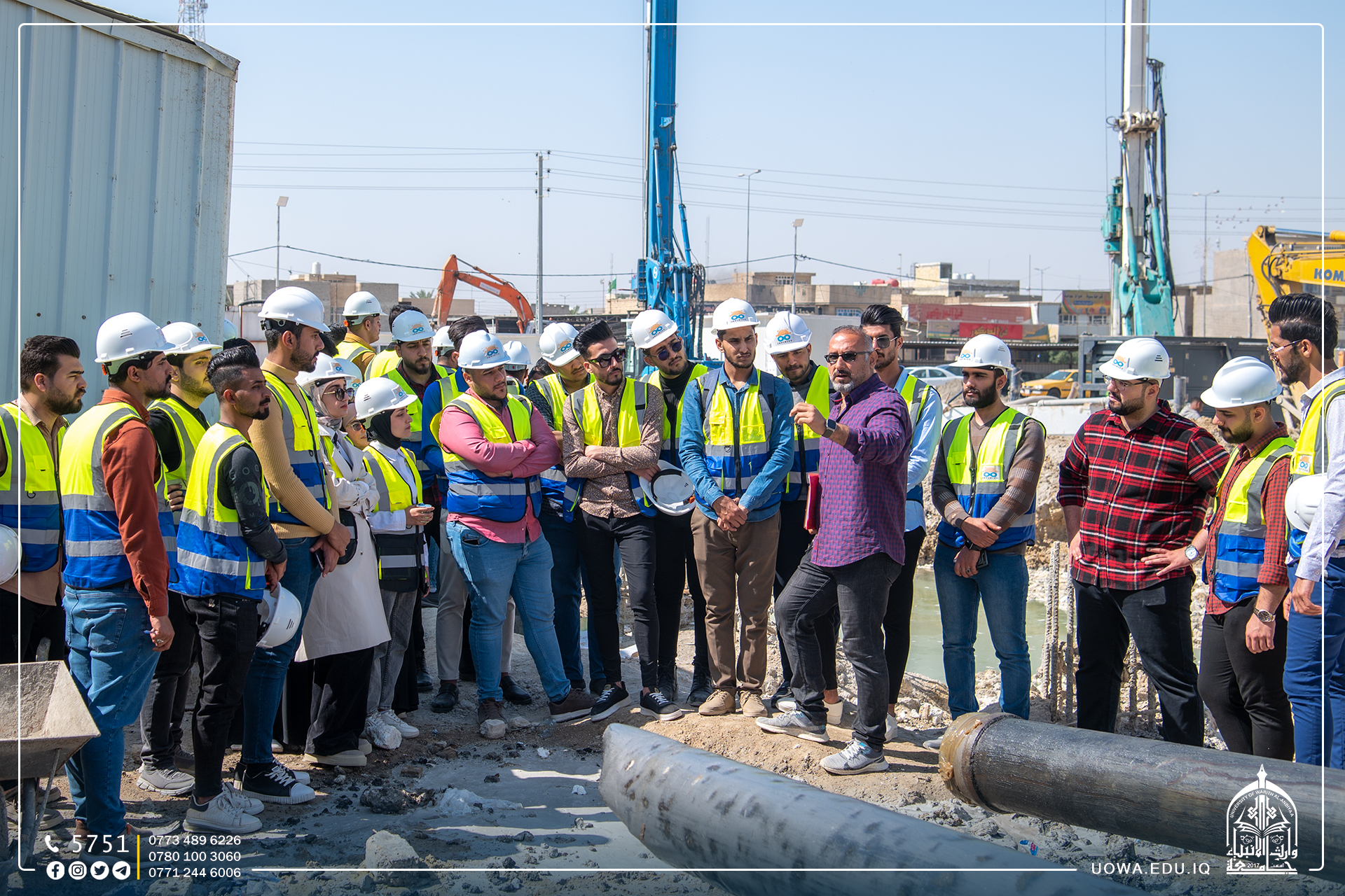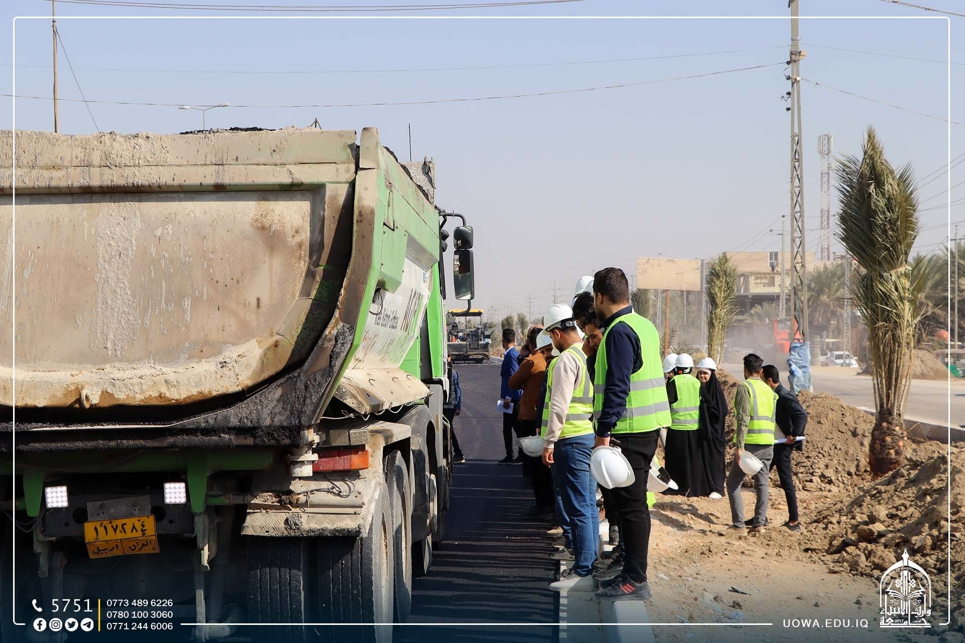 وعد مدير الشركة المنفذة لمشروع اكساء طريق كربلاء- بغداد الطلبة الخمسة الاوائل في قسم الهندسة المدنية بجامعة وارث الانبياء(عليه السلام) بفرصة عمل في الشركة عند تخرجهم من الكلية بعد زيارة طلبة المرحلة الرابعة من قسم الهندسة المدنية الى المشروع للإطلاع على الاعمال المقامة هناك.