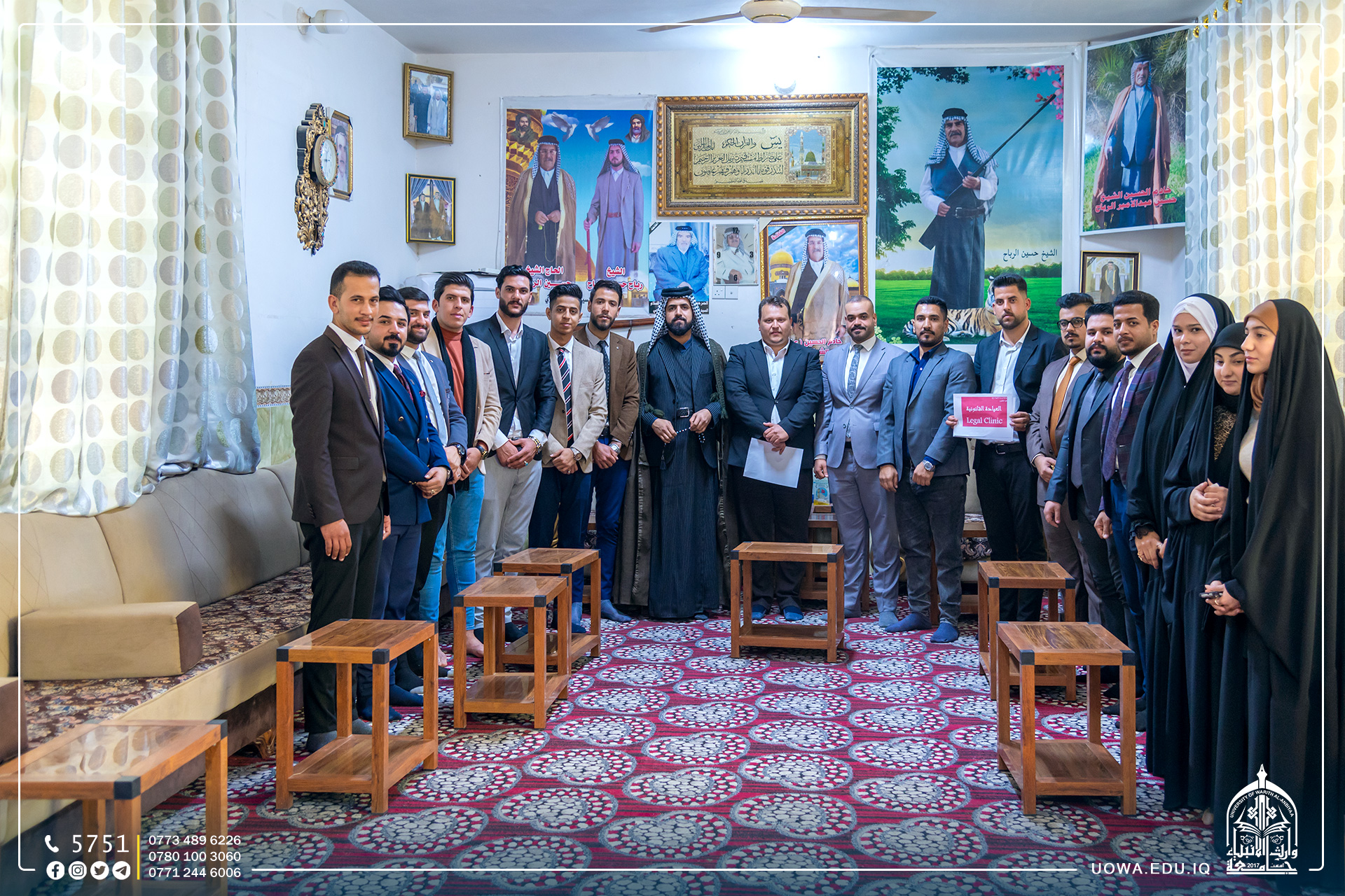 ضمن المبادرة الأكبر التي اطلقتها هيئة الصحة والتعليم الجامعي في العتبة الحسينية المقدسة بمناسبة الولادات الشعبانية المباركة، أقامت كلية القانون في جامعة وارث الانبياء (عليه السلام) جولة ميدانية للقرى في أطراف محافظة كربلاء المقدسة لتقديم الاستشارات القانونية وتقديم المبادرات للعيادة القانونية في داخل الجامعة للمواطنين الذي ليست لديهم معلومات قانونية أو بحاجة الى توكيل محامي بشكل مجاني ولمدة اسبوع.