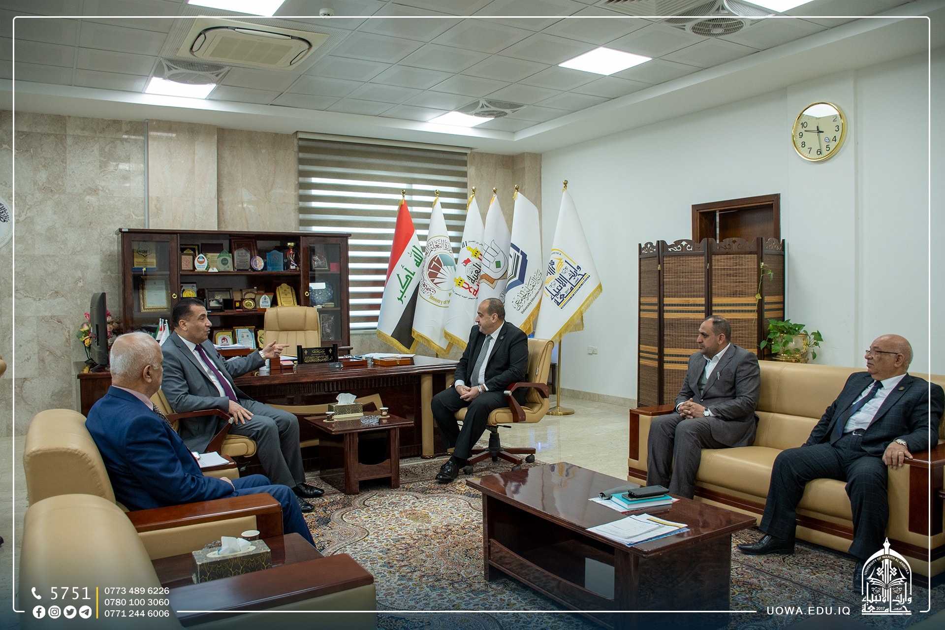 بالصور.. لقاء السيد رئيس الجامعة الاستاذ الدكتور ابراهيم الحياوي بوفد من مجلس اعيان كربلاء، سعياً من رئاسة الجامعة على ديمومة الانفتاح على المجتمع الكربلائي والمؤسسات الاجتماعية ومنظمات المجتمع المدني والسعي الجدي والحثيث للارتقاء بهذه المدينة المقدسة علمياَ وثقافياَ وعمرانياَ