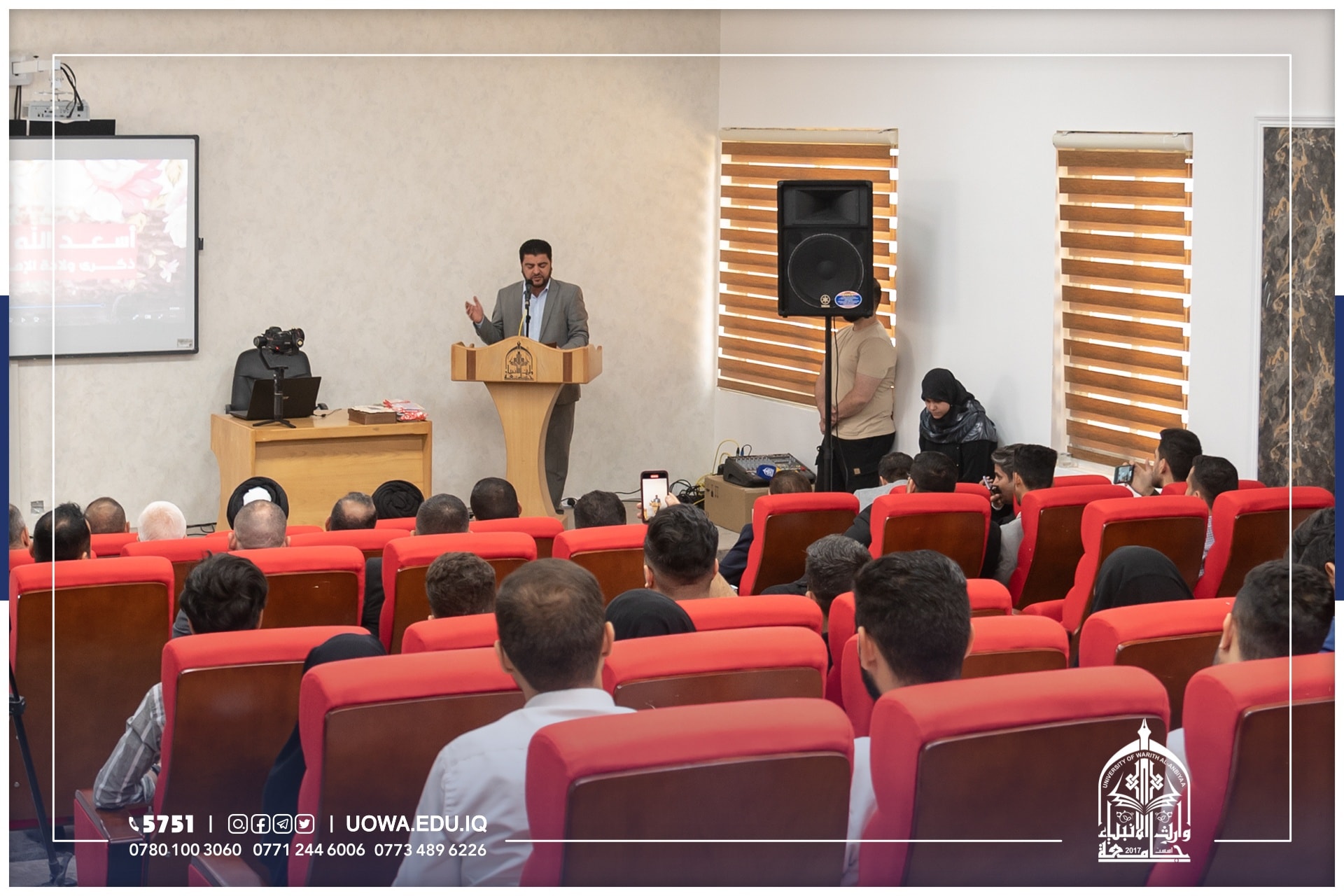 على قاعة الإمام الحسين عليه السلام (القاعة المدرجة في كلية القانون)