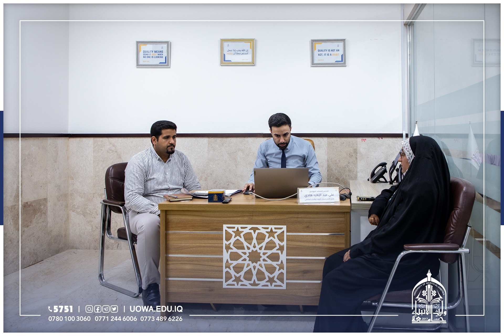 حرصاً على تطبيق معايير ومتطلبات التنمية المستدامة وضمن الخطة الاستراتيجية للجامعة    تابع السيد رئيس الجامعة الاستاذ الدكتور ابراهيم الحياوي مع السيد رئيس قسم ضمان الجودة المدرس علي عبد الزهرة هادي