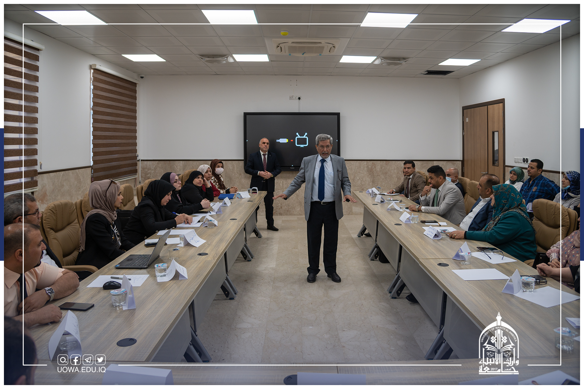 برعاية رئيس جامعة وارث الأنبياء (عليه السلام) الأستاذ الدكتور إبراهيم الحياوي يقيم مركز التعليم المستمر وبالتعاون مع العتبتين المقدستين ومؤسسة الشهداء/ كربلاء دورة تدريبية بعنوان "مهارات العرض والالقاء"