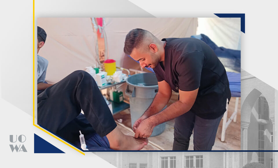 As part of the humanitarian and service initiatives undertaken by the University of Warith Al-Anbiyaa (PBUH) during the mass pilgrimage of Arbaeen, students from the College of Nursing contributed to the medical posts at Al-Shaheed Al-Muhandis Hospital. They assisted in treating emergency cases and providing direct healthcare services to pilgrims of Imam Hussain’s (PBUH) Arbaeen.
