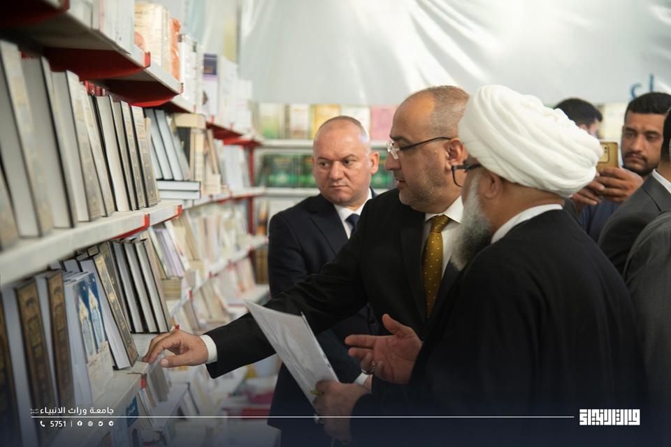On the occasion of the birth anniversary of Lady Zaynab (peace be upon her), Warith Al-Anbiyaa University (AS) hosted the “Good Tree of the Book” exhibition, organized by the Department of Religious Festivals and Occasions at the Holy Husayni Shrine, with the presence of the University President, Prof. Dr. Ibrahim Saeed Al-Hayawi, along with faculty members and students.