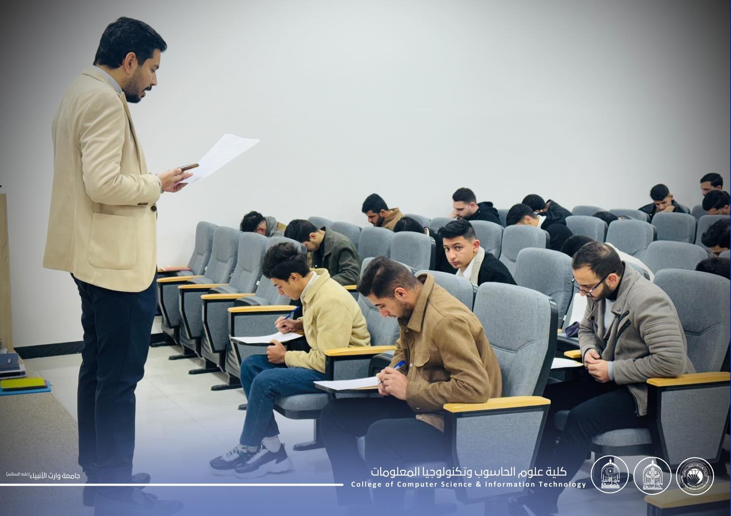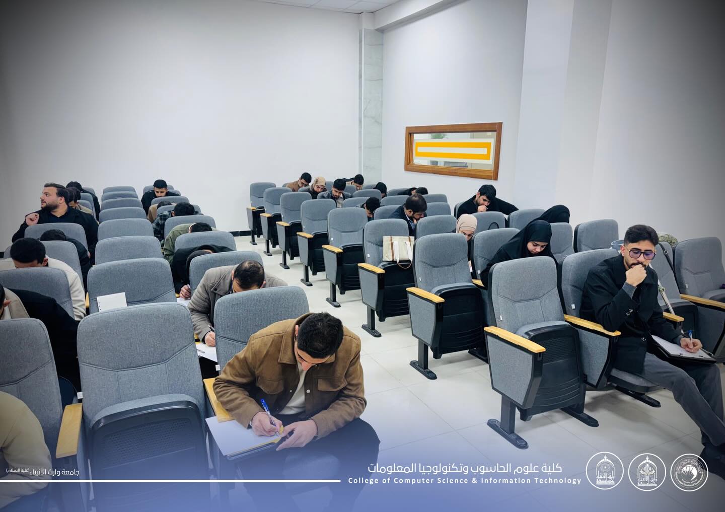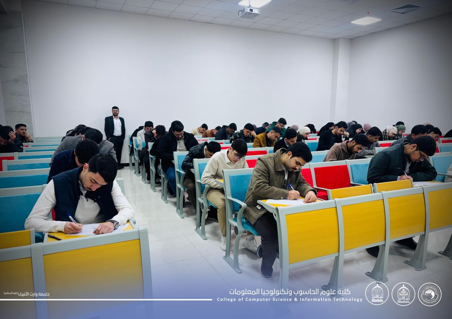 Students of the College of Computer Science and Information Technology, including the Departments of Cybersecurity, Artificial Intelligence, and Information Technology, sat for the midterm examinations of the first semester for the academic year 2025–2026.